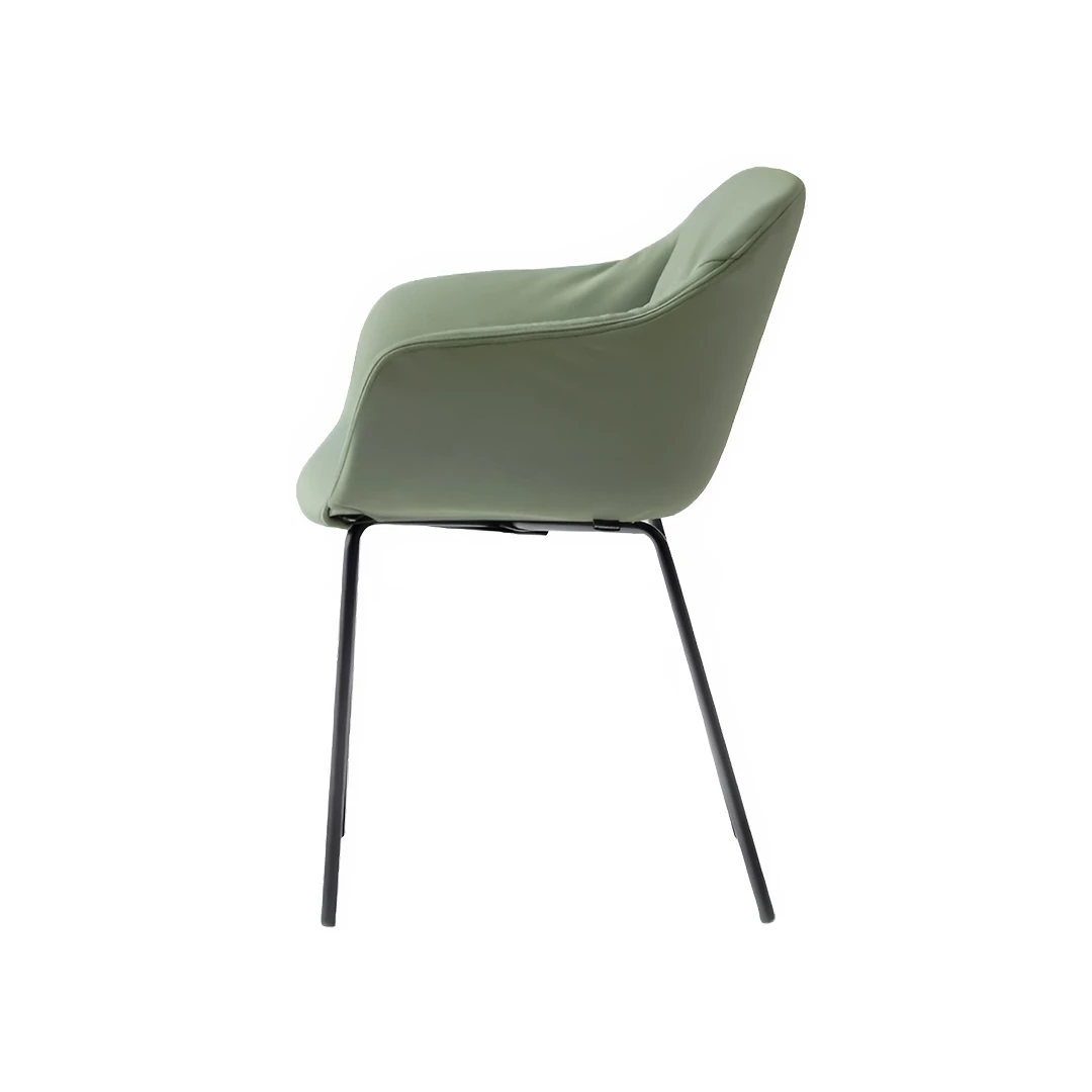 Babila XL 2733R combineert traditie en innovatie in een harmonieus ontwerp. De fauteuil heeft een ruime zitting en armleuningen, met een gegoten schaal van volledig gerecycled polypropyleen – 50% afkomstig van consumentenafval en 50% van industrieel afval. De schaal is versterkt met glasvezel, antistatisch en UV-bestendig. Het stalen buisframe (Ø16 mm) biedt stevigheid en duurzaamheid. De afneembare, beklede hoes is gevuld met flexibel polyurethaanschuim met hoge dichtheid (65 kg/m³), is brandvertragend (klasse 1 IM) en eenvoudig schoon te maken of los te halen. De binnenzijde is antislip en donkergrijs van kleur.