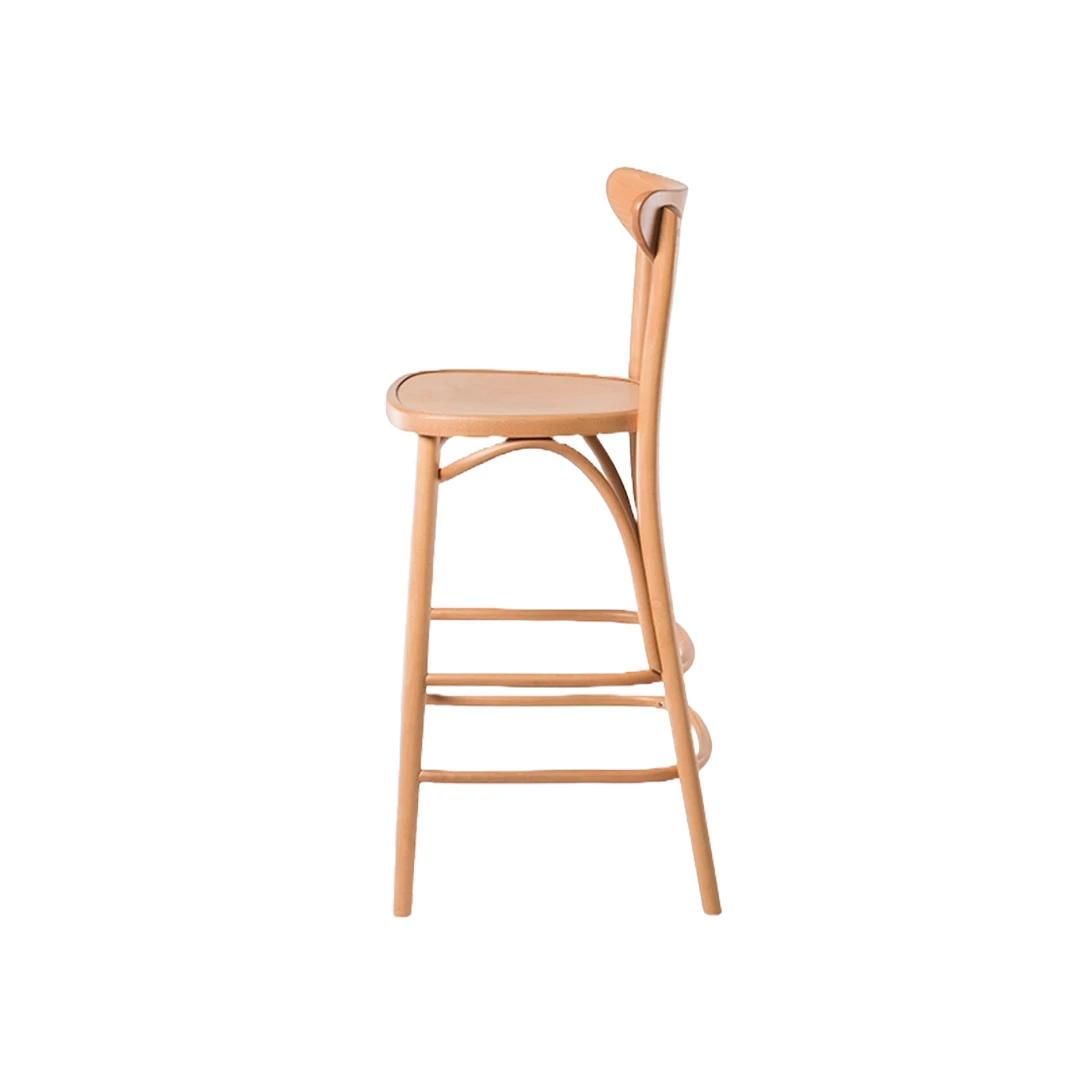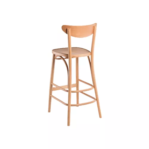 De Banana BK houten barkruk toont tijdloos vakmanschap door traditioneel buigen van beukenhout. Het massief beukenhouten frame en de houten voetensteun garanderen duurzaamheid en comfort, terwijl de natuurlijke rondingen hem een verfijnde, klassieke uitstraling geven. Verkrijgbaar in diverse houtbeitskleuren, ideaal voor bars, bistro's en horecagelegenheden.