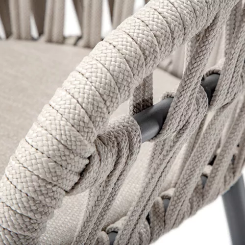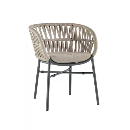 De Breeze buitenstoel is perfect voor elke HORECA-terras. De stoel heeft een licht aluminium frame, armleuningen en rugleuning in polyolefin touw, en een comfortabel Textylene kussen. Leverbaar in verschillende kleuren voor een stijlvolle buitenruimte.