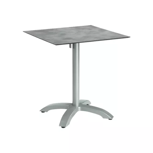 CA403 is een stevige aluminium tafelonderstel voor buitengebruik, ontworpen voor horecagelegenheden. Hoogte 72 cm, voorzien van een opklapbaar bladmechanisme. UV- en weerbestendig. Geschikt voor bladen tot 80x80 cm of ⌀80 cm. Tafelblad niet inbegrepen.