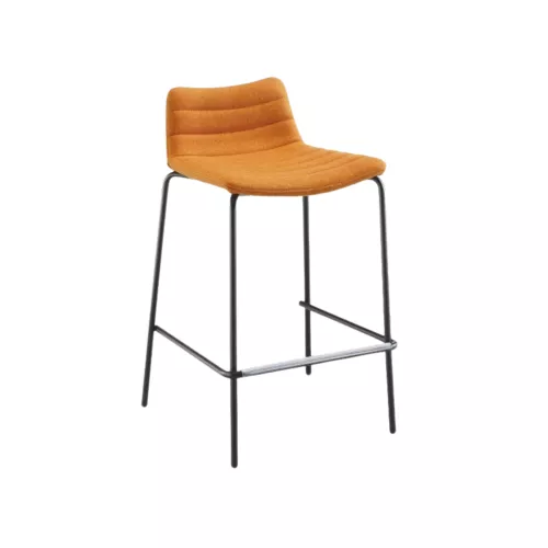 Verfijnde barkruk met een strak metalen frame met vier poten en een gestoffeerde zitting, verkrijgbaar in leer, imitatieleer of stof. Ontworpen om comfort en stijl te combineren, past hij perfect in moderne bars, restaurants en cafés. Verkrijgbaar in twee hoogtes – 65 cm en 75 cm – biedt hij veelzijdige oplossingen voor verschillende baropstellingen, met behoud van een verfijnde, minimalistische esthetiek.