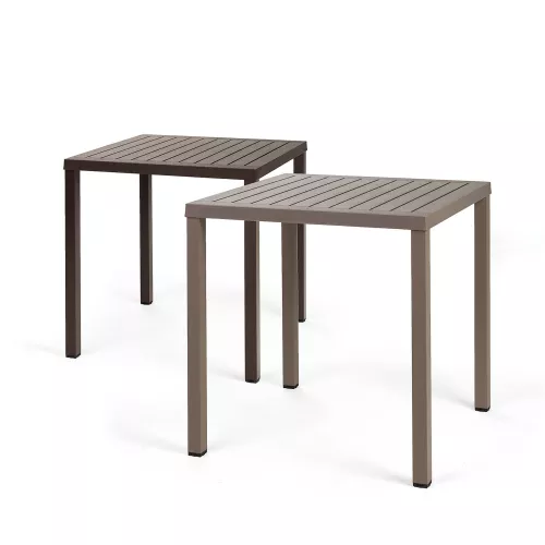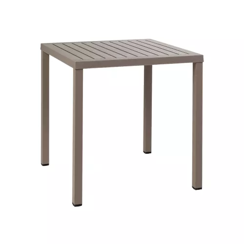 Cube 70 is een moderne stapelbare buitentafel, ontworpen voor horecaterrassen. Gemaakt van UV-bestendige polypropyleen met aluminium poten. Tafelblad van 70x70 cm, ook verkrijgbaar in 80x80 cm. Duurzaam en praktisch.