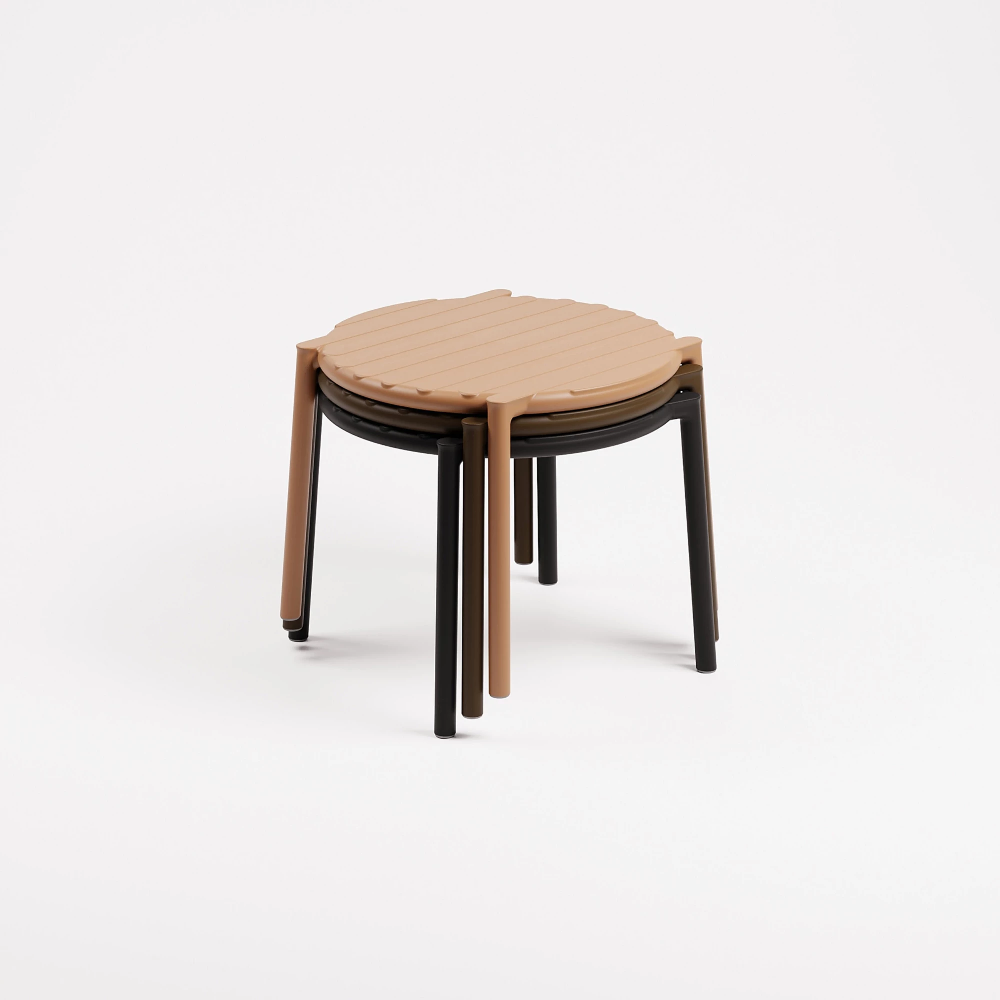 De Doga bijzettafel is een lichtgewicht, monobloc lage tafel, gemaakt van glasvezelhars, met een rond blad en een modern, praktisch design. De stapelbare constructie maakt hem gemakkelijk te verplaatsen en op te bergen. Ontworpen voor horecagelegenheden buiten, is hij gemaakt van uniform gekleurde glasvezelpolypropyleenhars met UV-additieven en een matte afwerking, wat duurzaamheid en eenvoudige hygiëne garandeert.