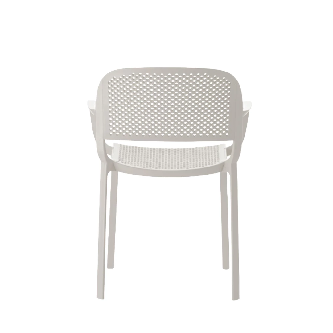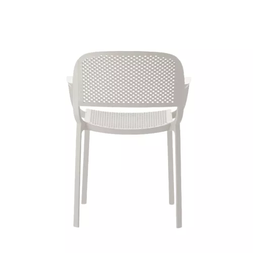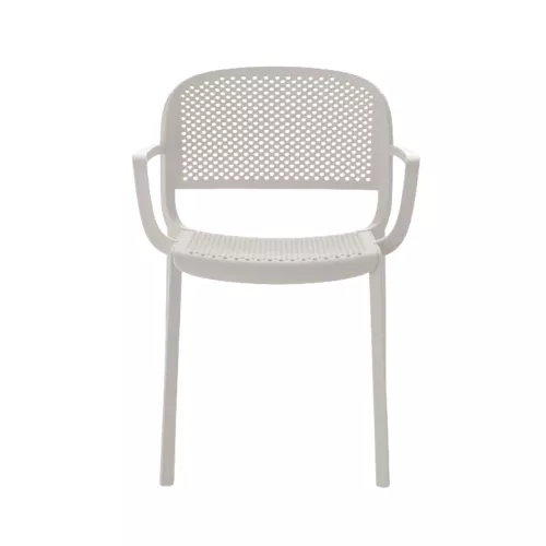 Dome 266 is een buitenstoel met armleuningen, gemaakt van duurzaam polypropyleen. De geperforeerde zitting en rug zorgen voor comfort en ventilatie. UV-bestendig, antistatisch en stapelbaar. Ideaal voor elke horecaterras.