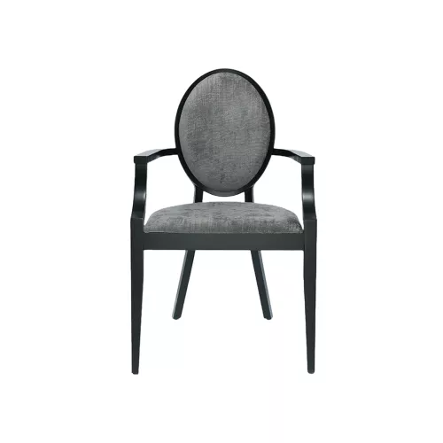 De Doris A stoel is een bestseller die tijdloze elegantie en comfort belichaamt. De kenmerkende ellipsvormige rugleuning en zachte bekleding creëren een verfijnde look, versterkt door elegante armleuningen. Gemaakt van duurzaam beukenhout en verkrijgbaar in diverse afwerkingen en stoffen, is de Doris A een uitstekende keuze voor stijlvolle horeca-interieurs.
