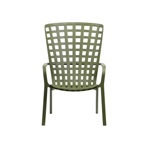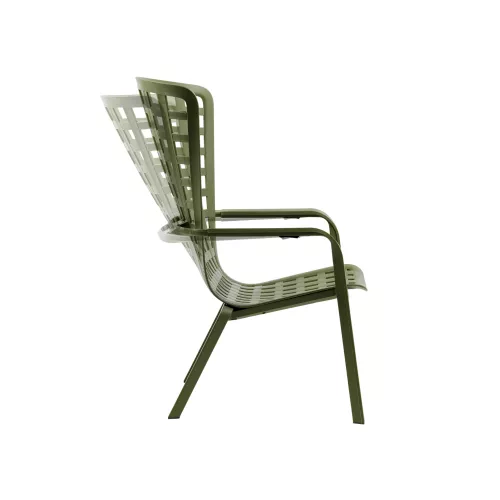 Folio is een stijlvolle relaxfauteuil voor buiten, met een omhullende rugleuning die naadloos overgaat in de royaal verlaagde zitting. Gemaakt van glasvezelhars, is deze stoel voorzien van een geperforeerd vierkant patroon en een matte afwerking, verkrijgbaar in kleuren zoals wit, antraciet, tortora, agave en tabacco. De rugleuning is verstelbaar in twee comfortabele posities, perfect om in alle rust van buitenmomenten te genieten. Bijpassende kussens zijn op bestelling leverbaar, speciaal ontworpen voor buitengebruik in Lino-stof, tegen een meerprijs van ongeveer 40%. De kussens zijn niet afneembaar, zonder rits, 7 cm dik en gevuld met polyurethaanschuim met een dichtheid van 18 kg/m³. Ze worden stevig bevestigd met stoffen banden met klittenband. Kleurvarianten zijn Arctic en Felce, die mooi aansluiten bij de natuurlijke tinten van de stoel. Folio is de perfecte keuze voor wie comfort en elegantie wil combineren op het terras, in de tuin of bij het zwembad.