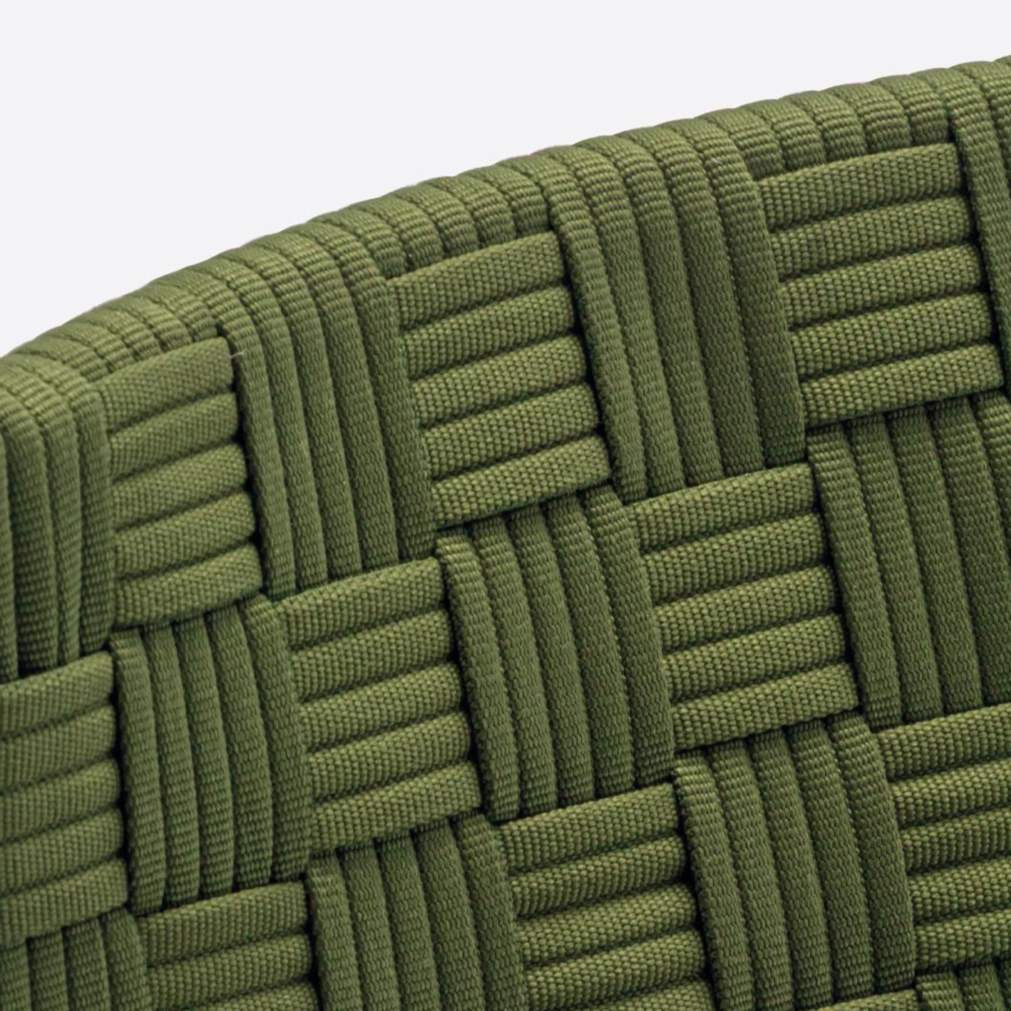 Griante herinterpreteert het concept van geweven zitmeubilair met een verfijnd ontwerp dat traditioneel vakmanschap combineert met moderne, industriële precisie. Deze fauteuil voor binnen heeft een frame van FSC® C114358-gecertificeerd essenhout, wat zowel duurzaamheid als elegantie benadrukt. De cilindrische poten zijn fijn gedraaid, terwijl de ovaalvormige armleuningen sierlijk taps toelopen waar ze de achterpoten raken, wat zorgt voor een vloeiende, organische vorm. Een aluminium frame biedt stabiele ondersteuning voor de zitting. De kenmerkende handgeweven zitting en rugleuning, vervaardigd in Italië van volledig recyclebare polypropyleengarenbanden, hebben een rijke driedimensionale textuur die zorgt voor uitzonderlijk comfort en duurzaamheid. Gemakkelijk te demonteren en prachtig gedetailleerd, Griante belichaamt tijdloos design en verantwoord vakmanschap.