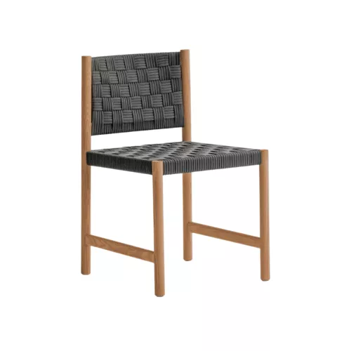 Griante herinterpreteert het concept van geweven zitmeubilair met een ontwerp dat traditioneel vakmanschap combineert met moderne, industriële precisie. De cilindrische poten zijn subtiel gedraaid, terwijl het aluminium frame zorgt voor een stevige ondersteuning van de zitting. Het onderscheidende kenmerk van Griante ligt in de handgeweven zitting en rugleuning, vervaardigd in Italië van volledig recyclebare polypropyleen garenbanden met een verfijnde driedimensionale textuur. Het geweven patroon, gedefinieerd door een geometrische herhaling van vierkante vormen, accentueert de royale afmetingen van de zitting en versterkt de elegante, uitnodigende esthetiek. Het resultaat is een stoel die verfijning, comfort en een tijdloos design uitstraalt, maar tegelijkertijd eenvoudig te demonteren en milieuvriendelijk is.