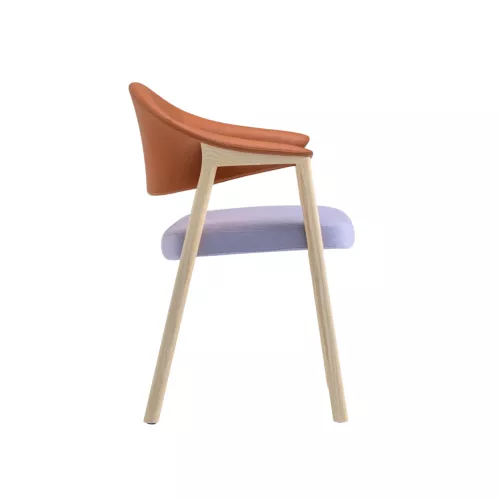 Gedefinieerd door zachte rondingen en een verleidelijk gevoel van comfort, brengt deze stoel een nieuwe dimensie van comfort in elke verfijnde omgeving. Het frame, vervaardigd in essenhout of Amerikaans notenhout, omarmt een ergonomische rugleuning van geïnjecteerd polyurethaanschuim, die een zachte en omhullende ondersteuning biedt. De royale zitting, bekleed met polyurethaanschuim en verstevigd met elastische banden, nodigt uit tot lange momenten van ontspanning. Rustend op ovale poten van massief hout, voelt het silhouet vloeiend en harmonieus aan, waardoor het een prachtige keuze is voor prestigieuze horecagelegenheden zoals elegante restaurants en hotels, maar ook voor verfijnde wooninterieurs.
