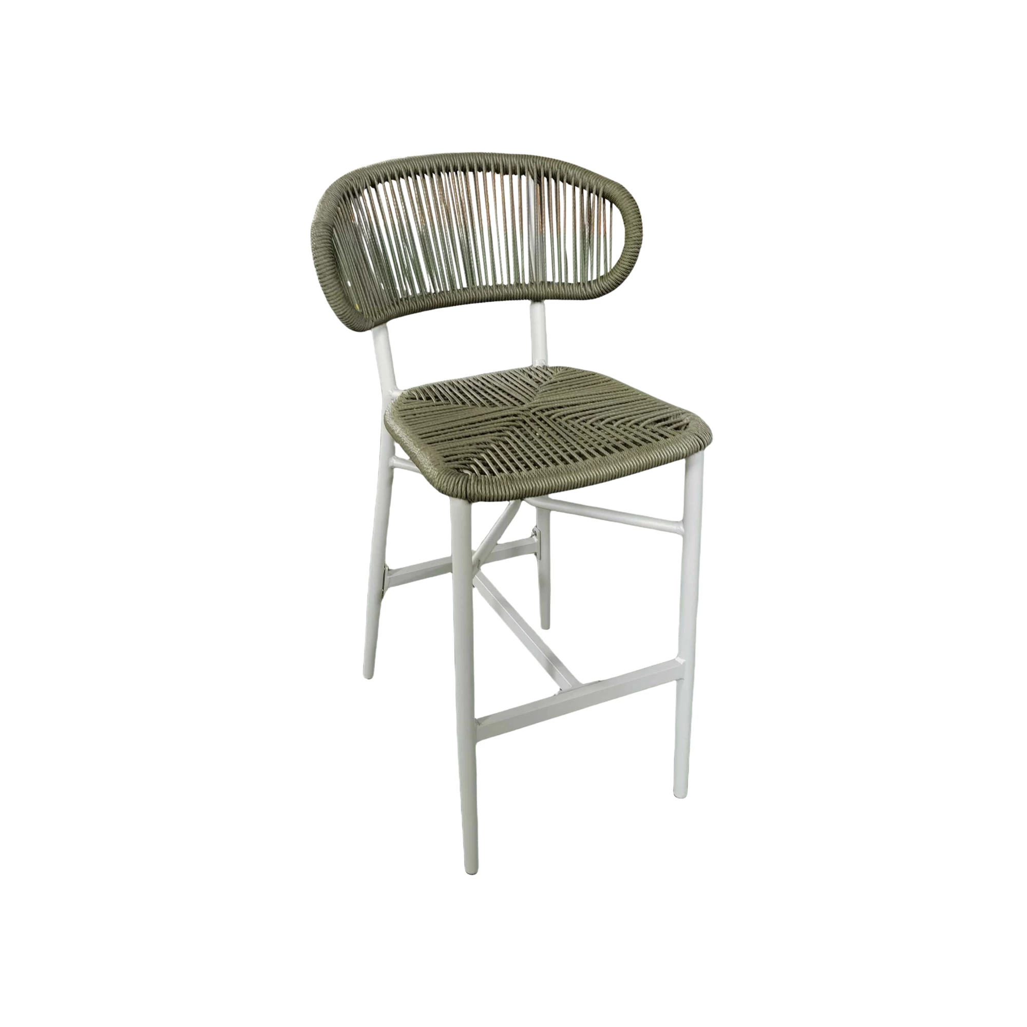Comfort speelt een belangrijke rol op ieder horecaterras. Een goed ontworpen barkruk nodigt gasten uit om langer te blijven zitten en te genieten van hun tijd. Deze barkruk voor buiten combineert een licht aluminium frame met een duurzame poedercoating, waardoor hij geschikt is voor intensief gebruik op terrassen. De zitting en rugleuning zijn uitgevoerd in een rattan vlechtwerk dat zorgt voor een warme uitstraling en aangenaam zitcomfort. Dankzij de lichte constructie is de barkruk eenvoudig te verplaatsen en bovendien stapelbaar voor praktische opslag. Verkrijgbaar in de kleurencombinaties charcoal/groen, charcoal/naturel, oranje en groen.