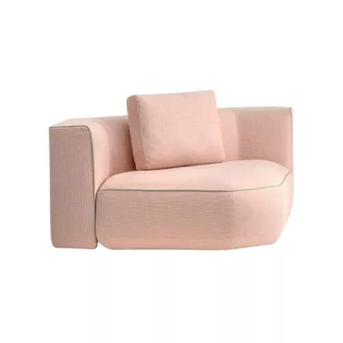 Het 90° hoekelement heeft een schuine rugleuning van zeer comfortabel, vormvast polyurethaanschuim, rustend op een multiplex platform dat licht verhoogd is met discrete pootjes van 3 cm. Een ondersteunend rugkussen verbetert het comfort in de lendenen, terwijl de volledig uitneembare stoffen bekleding het reinigen eenvoudig en stressvrij maakt.Regular cleaning of fabrics is recommended to maintain the appearance of textile coverings and extend their lifespan. Dust and dirt wear out the fabric, so regular vacuum cleaning (with less intense suction) is recommended. For stains it is essential to act quickly; liquids should be absorbed with a white absorbent cloth. Non-greasy stains can be removed by gently dabbing with a damp sponge or a lint-free white cloth. Evaluate effectiveness of cleaning agents on small, out-of-sight areas. Avoid using abrasive products, concentrates, solvents or bleaches. Please note that these suggestions are only recommendations and do not guarantee complete stain removal. Always refer to the technical and maintenance specifications mentioned on each specific technical sheet and the indications on any labels.