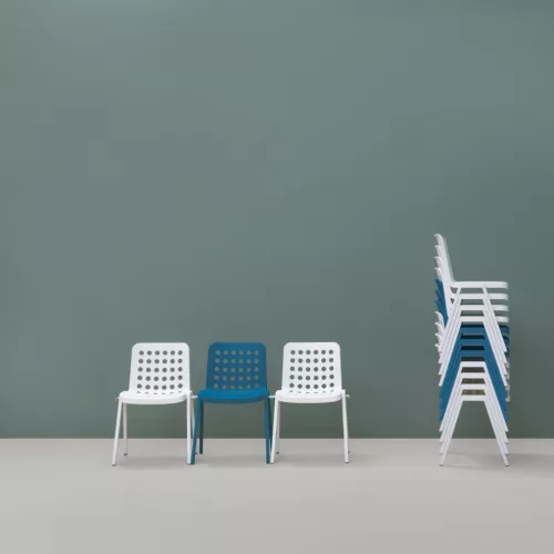 De Koi Booki 370 is een moderne stoel die zowel duurzaamheid als stijl combineert. De stoel heeft een spuitgegoten polypropyleen schaal en is beschikbaar in verschillende kleuren, waaronder wit, zwart, blauw, zand en oranje. De schaal is versterkt met glasvezel voor extra sterkte en is antistatisch en UV-bestendig, wat zorgt voor een lange levensduur, zowel binnen als buiten. De basis van de stoel bestaat uit een gegoten aluminium frame met geëxtrudeerde aluminium poten, die uitstekende stabiliteit en ondersteuning bieden. Het geslagen oppervlak geeft de stoel een unieke textuur, waardoor het niet alleen functioneel is, maar ook esthetisch aantrekkelijk.