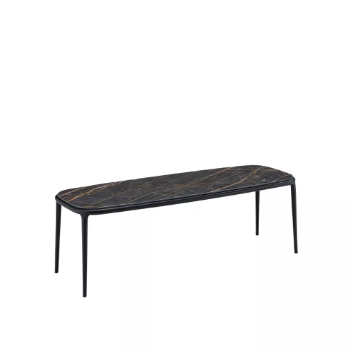 Lea CT L is een koffietafel van 34cm hoog met een blad van 108x39cm in essenhoutfineer of keramiek. Het gelakte stalen frame komt in diverse kleuren – perfect voor stijlvolle horeca-interieurs.