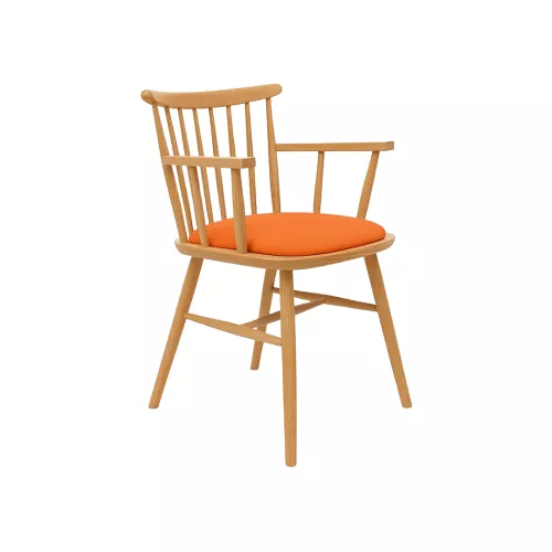 De Louisiana A UPH stoel met armleuningen combineert traditioneel design met een trendy vintage stijl. Het geprofileerde frame, de slanke, met de hand geslepen rugleuningen en de gebogen dwarsbalk complementeren een unieke hoefijzervormige zitting. De stoel is gemaakt van beukenhout en heeft een gestoffeerde zitting en houten rugleuning, verkrijgbaar in diverse houtkleuren en stoffen of kunstleer – perfect voor horeca-interieurs.