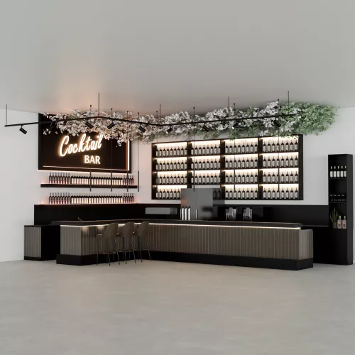 Een eigentijds, modern barconcept op maat, ontworpen voor stijlvolle cafés en restaurants. Het volledige ontwerp is beschikbaar in 3D , wat een duidelijke en meeslepende preview van het eindresultaat biedt.
