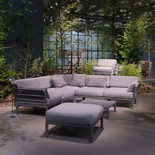 De Maximo Pouf Sofa is een flexibel onderdeel van een modulair outdoor loungesysteem. Het frame is gemaakt van UV-bestendig geregenereerd polypropyleen. Rug- en armleuningen kunnen zonder gereedschap aan elke zijde worden bevestigd. De zitkussens zijn afneembaar en voorzien van een rits – ideaal voor elk horecaterras.