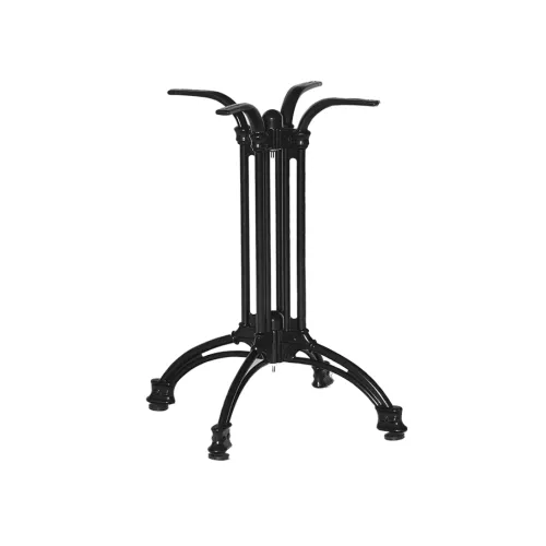 MO-12 is een stevig tafelonderstel voor buiten, gemaakt van gegoten aluminium met zwarte poedercoating. Dankzij de UV- en weerbestendige afwerking is het geschikt voor intensief gebruik. Met vier poten ondersteunt het bladen tot 80x80 cm of ⌀80 cm – perfect voor elke horecalocatie buiten.