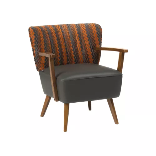 Comfortabele armstoel met een frame van massief beukenhout, ideaal voor professioneel gebruik. Voorzien van hoogwaardig schuim met hoge dichtheid en een veringsysteem voor extra zitcomfort. Verkrijgbaar in een breed scala aan projectstoffen en kunstleer. Het houten frame is beschikbaar in diverse houtkleuren.