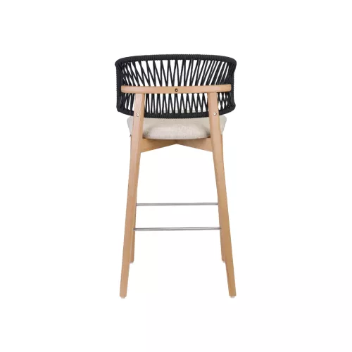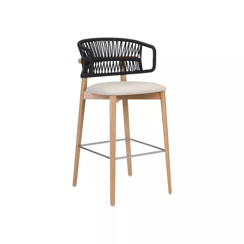De Nebulas BK is een hoogwaardige houten barkruk, speciaal ontworpen voor horecagelegenheden. Het essenhouten frame is verkrijgbaar in verschillende beitsafwerkingen en is voorzien van een duurzame metalen voetensteun. De zitting is bekleed met professionele stoffen, terwijl de handgeweven rugleuning met corduroy een unieke visuele textuur toevoegt. Ideaal voor stijlvolle bars, lounges en horeca-interieurs.