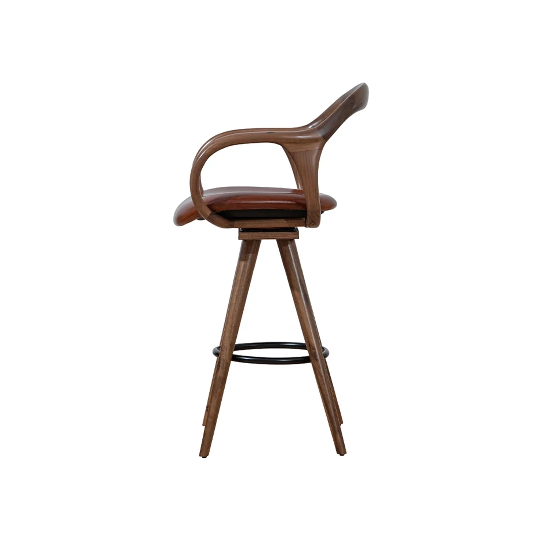 De Nelas BK barkruk combineert een minimalistisch, natuurlijk design met comfort en duurzaamheid. Het beukenhouten frame, verkrijgbaar in diverse kleuren, heeft een afgeronde houten rugleuning en armleuningen, een metalen voetensteun en een gestoffeerde zitting. Ideaal voor bars, hotels en diverse horecagelegenheden, met bekleding in professionele stoffen of kunstleer.