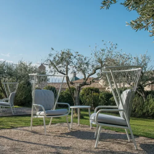 De Net Lounge HB is een stijlvolle loungestoel volledig vervaardigd uit aluminium, waardoor hij licht en duurzaam is – perfect voor drukbezochte restaurantinterieurs. Het strakke ontwerp wordt versterkt door comfortabele zit- en rugkussens. Net Lounge HB biedt een perfecte balans tussen functionaliteit en elegantie in elke horecaruimte.