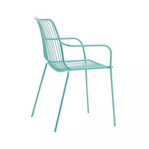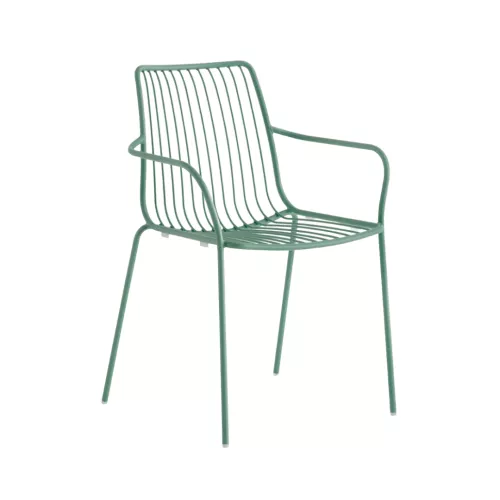 Deze uitvoering heeft een hoge rugleuning en is volledig vervaardigd uit staal, ideaal voor gebruik in de buitenlucht.