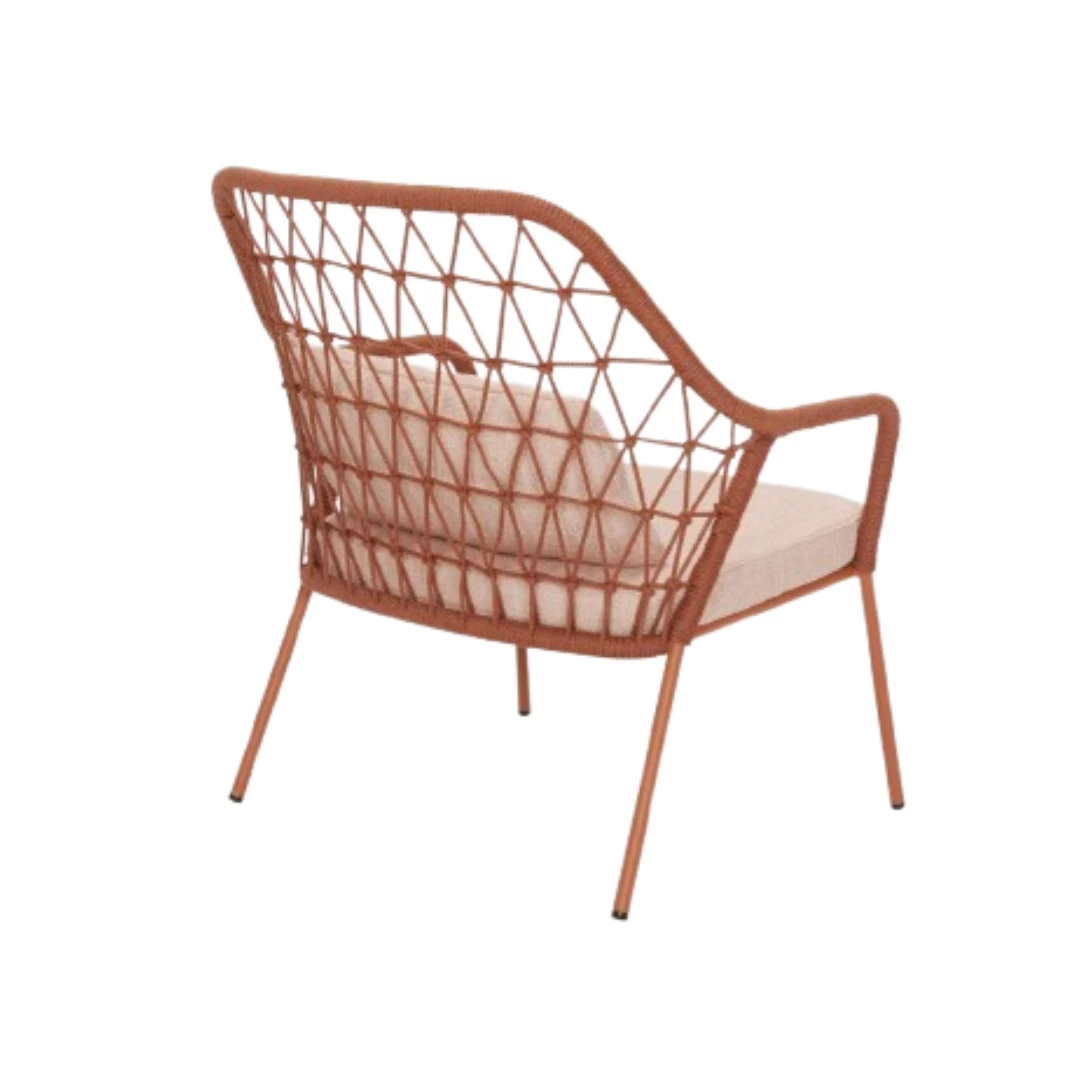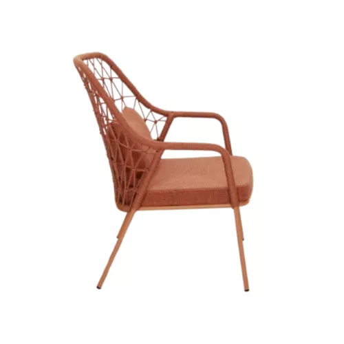Panarea 3679 is een stijlvolle loungefauteuil met een handgeweven Italiaans polypropyleen koord dat een duurzaam stalen frame van Ø 20 mm omhult. Het droog aanvoelende polyurethaan zitkussen, bekleed met bijpassend garen, en de ondersteunende armleuningen maken hem perfect voor restaurants en elegante horecagelegenheden.