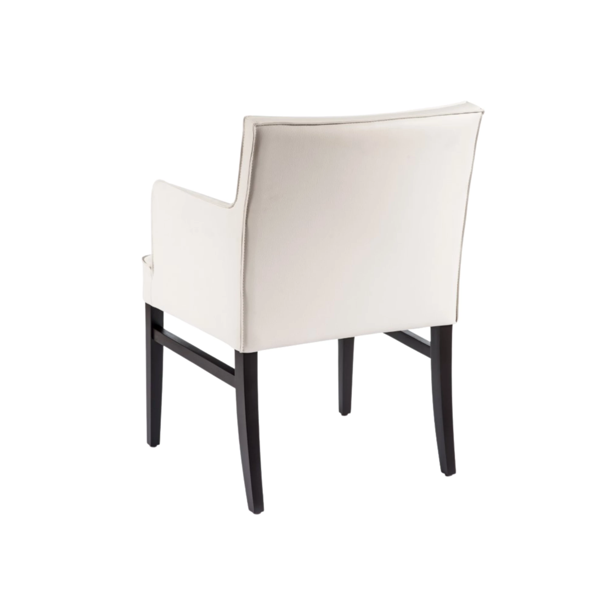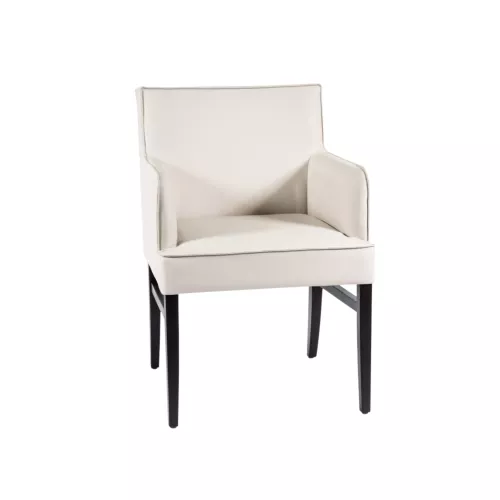 Elegante fauteuil met strakke lijnen en geïntegreerde armleuningen, perfect voor horecagebruik. De zitting en rugleuning zijn volledig gestoffeerd voor extra comfort, terwijl de stevige basis geschikt is voor intensief gebruik.