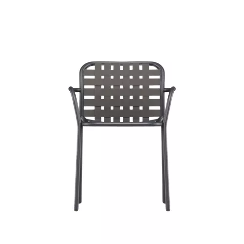 Deze outdoorcollectie onderscheidt zich door een innovatieve benadering en verfijnd vakmanschap. Gevlochten elastische banden worden op unieke wijze gecombineerd met een elegant aluminium frame, wat zorgt voor uitstekend comfort en een uitgesproken eclectische stijl. Perfect voor buitenruimtes zoals terrassen en lounges.