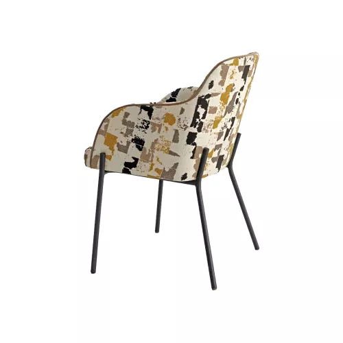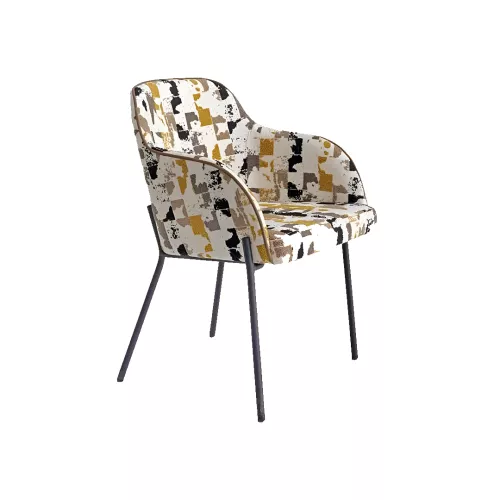 Romie A is een comfortabele stoel met armleuningen en een gepoedercoat stalen frame, verkrijgbaar in elke RAL-kleur. De zitting en rugleuning zijn gestoffeerd en kunnen worden aangepast met een breed aanbod aan stoffen of kunstleer. Geschikt voor horeca en verschillende interieurstijlen.