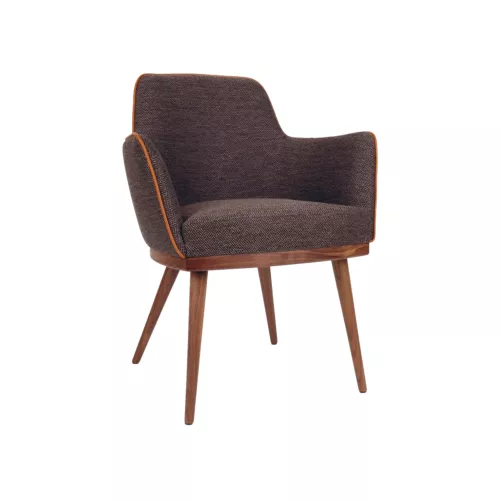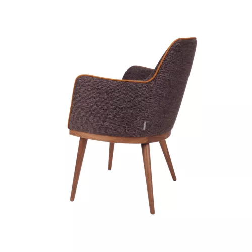De Shine A W1 stoel combineert elegant design met comfort, met een gestoffeerde zitting en armleuningen, ondersteund door een stevig frame van essenhout. Met stijlvolle pipingdetails brengt deze stoel verfijnde charme en elegantie in elk interieurrestaurant, café of bistro. De solide constructie zorgt voor duurzaamheid, terwijl de zachte bekleding uitzonderlijk zitcomfort biedt aan uw gasten. Perfect om uitnodigende eetruimtes te creëren, geeft Shine A W1 uw interieur tijdloze schoonheid en vakmanschap van topkwaliteit.