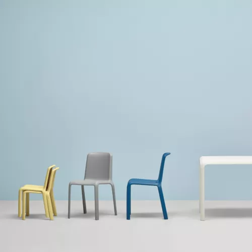 Der Snow 300 ist ein funktionaler und moderner Stuhl für den Innen- und Außenbereich. Gefertigt aus glasfaserverstärktem Polypropylen, ist er leicht, stabil und UV-beständig. Seine geschwungenen Linien und die stapelbare Bauweise machen ihn ideal für Cafés, Terrassen, Veranstaltungsorte und Gemeinschaftsbereiche. Mit matter Oberfläche und wetterfesten Materialien passt er sich jeder Umgebung stilvoll an. Maße: Breite 47 cm, Tiefe 55 cm, Höhe 80,5 cm, Sitzhöhe 45,5 cm.