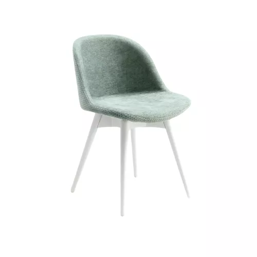 Verfijnde stoel met een massief houten frame met vier poten dat tijdloos design combineert met eigentijdse elegantie. De zitting kan worden bekleed met leer, ecoleer, stof of het materiaal van de klant zelf, wat volledige personalisatievrijheid biedt. Er is ook een versie met een gewatteerde ecoleren rugleuning beschikbaar, die een subtiele touch van verfijning en textuur toevoegt - ideaal voor stijlvolle horeca-interieurs.