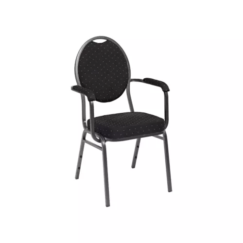 Standard Steel Arm is een gestoffeerde horecastoel met armleuningen en een stevig gepoedercoat stalen frame. Dankzij de verschillende stoffeerkleuren past hij bij uiteenlopende interieurs. Stapelbaar tot 14 stuks – stijlvol en functioneel.