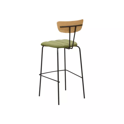 Summer BK is een stijlvolle barkruk met een stevig stalen frame, gestoffeerde zitting en houten rugleuning. De stoffering is beschikbaar in diverse professionele, slijtvast stoffen. Met een metalen voetsteun is deze barkruk perfect voor bars en andere horecalocaties.
