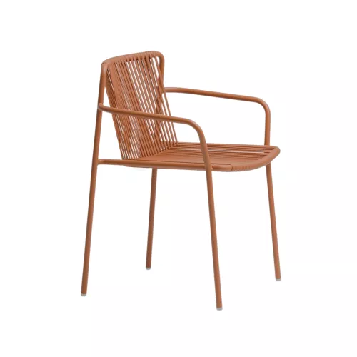 Tribeca 3665 is een stapelbare buitenstoel met armleuningen, ontworpen voor professioneel horecagebruik. De Ø20 mm stalen buisstructuur is gepoedercoat voor weersbestendigheid. Zitting en rugleuning zijn gemaakt van gevlochten, geëxtrudeerd PVC met een nylon kern. Geschikt voor terrassen en andere buitenlocaties.