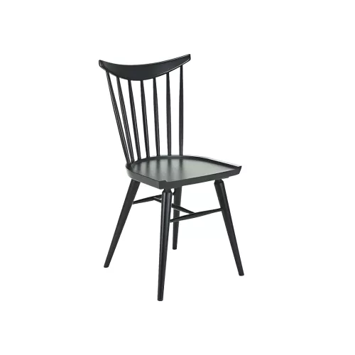 De Trieste WS houten stoel biedt klassieke elegantie en verfijnd comfort. De hoefijzervormige fineerzitting, de gebogen rugleuning met slanke, met de hand geslepen sporten en de taps toelopende poten met convergerende steunen creëren een onderscheidend, sierlijk silhouet. Vervaardigd van beukenhout en verkrijgbaar in diverse beitskleuren, combineert hij tijdloze stijl met duurzame functionaliteit.