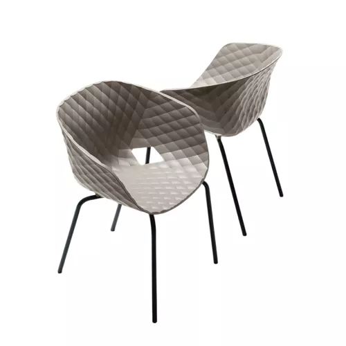 De Uno 594 is een elegante designfauteuil met een stevig stalen frame op vier poten en een comfortabele zitschaal van polypropyleen. Het metalen onderstel is verkrijgbaar in een verchroomde uitvoering of met een poedercoating die geschikt is voor buitengebruik, in zwart of wit. Op aanvraag kan de stoel worden geleverd met een speciale behandeling voor volledige outdoorbestendigheid. Snelle levering is mogelijk voor de versie met zwarte schaal op zwart frame en de versie met witte schaal op wit frame.