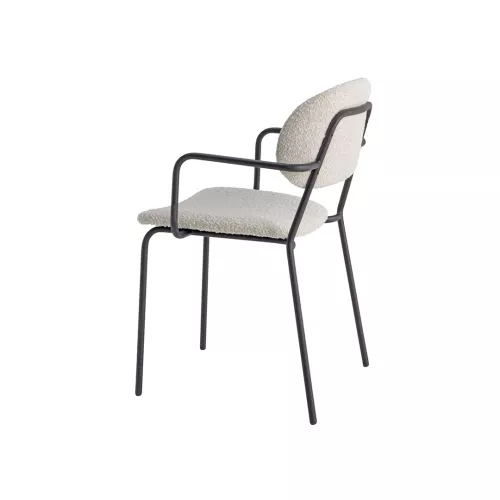 De Valesta A stoel is ontworpen voor horeca-ruimtes die betrouwbaarheid en comfort vereisen. Met een gestoffeerde zitting en rugleuning, samen met stevige metalen armleuningen, biedt hij zowel ondersteuning als functionaliteit. De bekleding is beschikbaar in professionele stoffen of kunstleer. Het metalen frame met poedercoating garandeert duurzaamheid. Stapelbaar voor efficiënt ruimtegebruik.