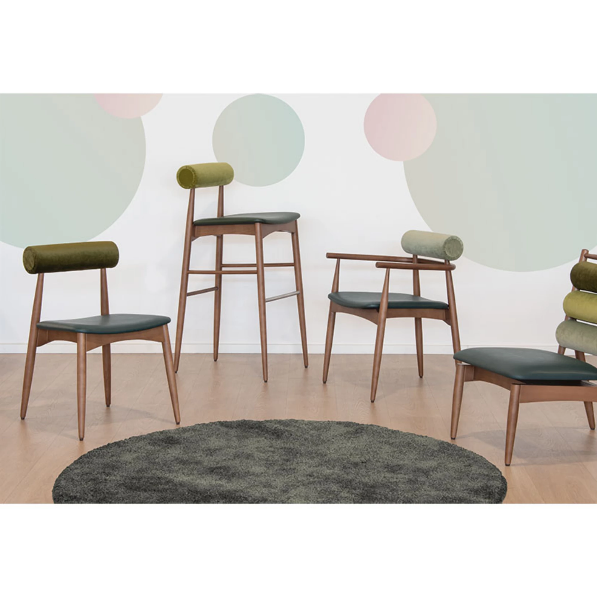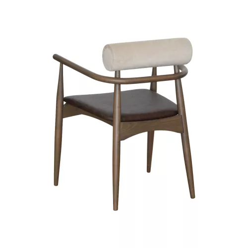 Yoto A is een elegante restaurantstoel voor binnen, met een sterk beukenhouten frame dat zorgt voor stabiliteit en langdurig gebruik. De zitting en rugleuning zijn bekleed met twee verschillende stoffen, wat zorgt voor een speelse, stijlvolle uitstraling. Perfect voor restaurants, cafés en hotels die op zoek zijn naar een unieke en persoonlijke inrichting.